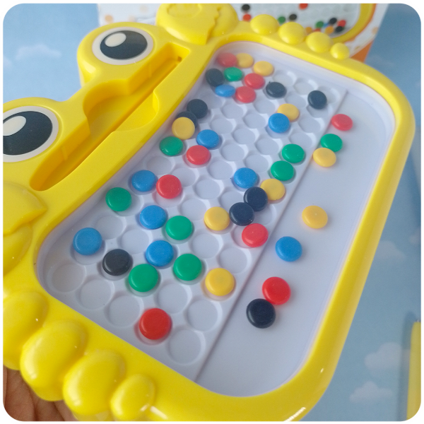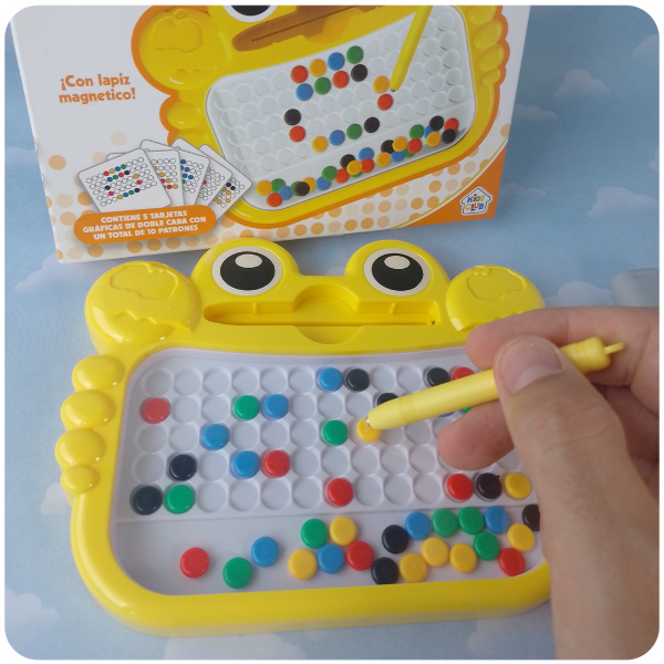 Es un juguete de alto valor didáctico que ofrece una experiencia de juego limpia y sin límites, ya que el diseño se borra y se puede recrear infinitamente. Su tamaño compacto lo hace perfecto como juguete de viaje y gracias a sus 10 patrones diferentes, "¡La diversión nunca termina!".