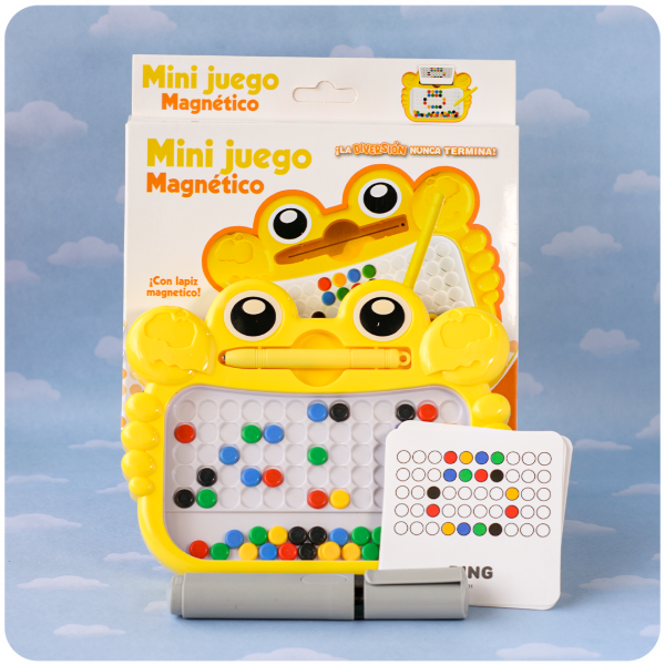 Portátil y educativo! Esta divertida mini tableta magnética permite a los niños crear figuras y patrones al instante. Utilizando el lápiz magnético incluido, pueden levantar y mover las pequeñas cuentas metálicas (lentejitas) que se encuentran dentro del panel transparente, desarrollando la motricidad fina y la creatividad.